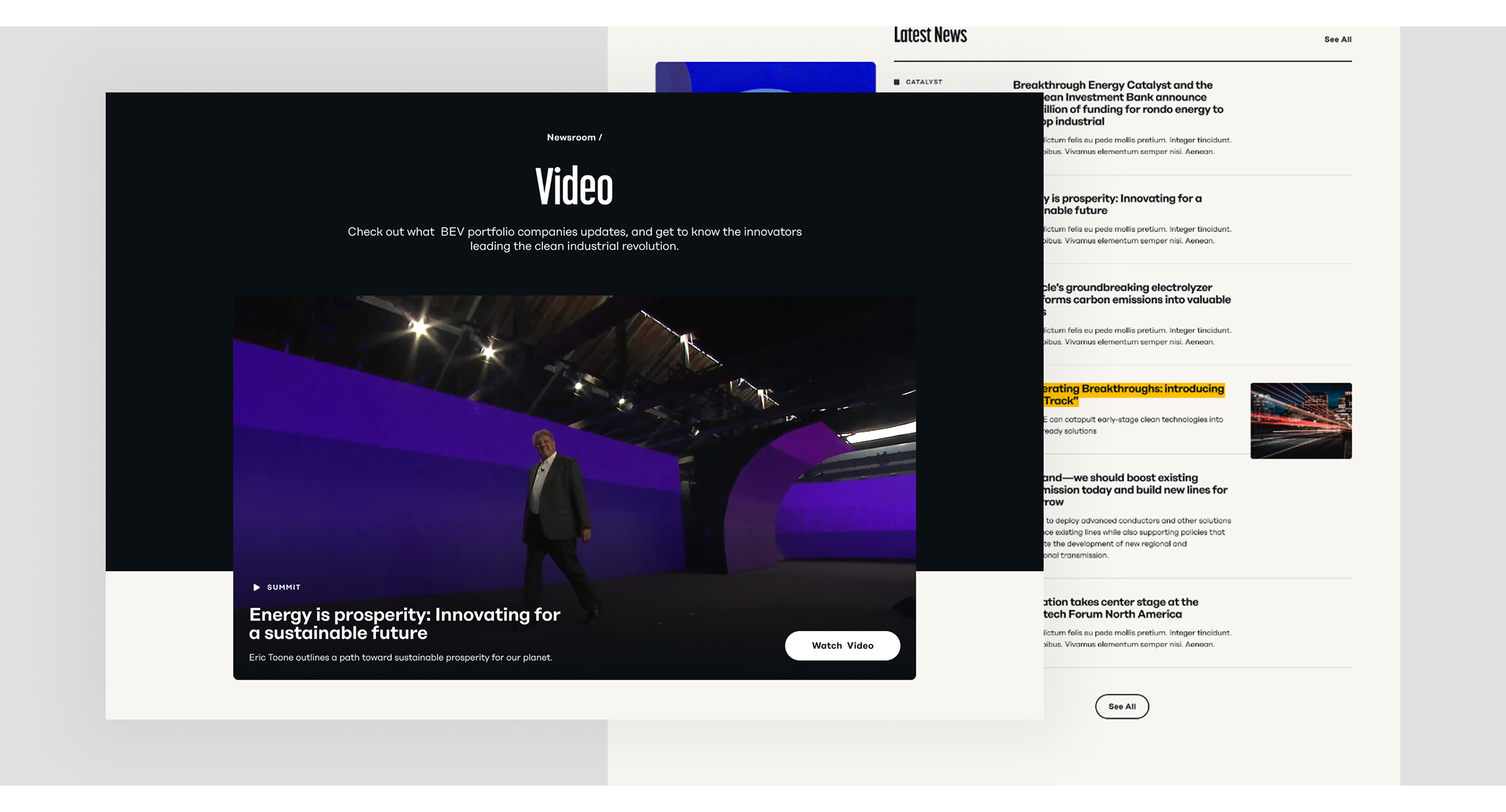 Redesigned the newsrooom and lookbook/portfolio pages for breakthrough energy - accelerating clean energy innovations